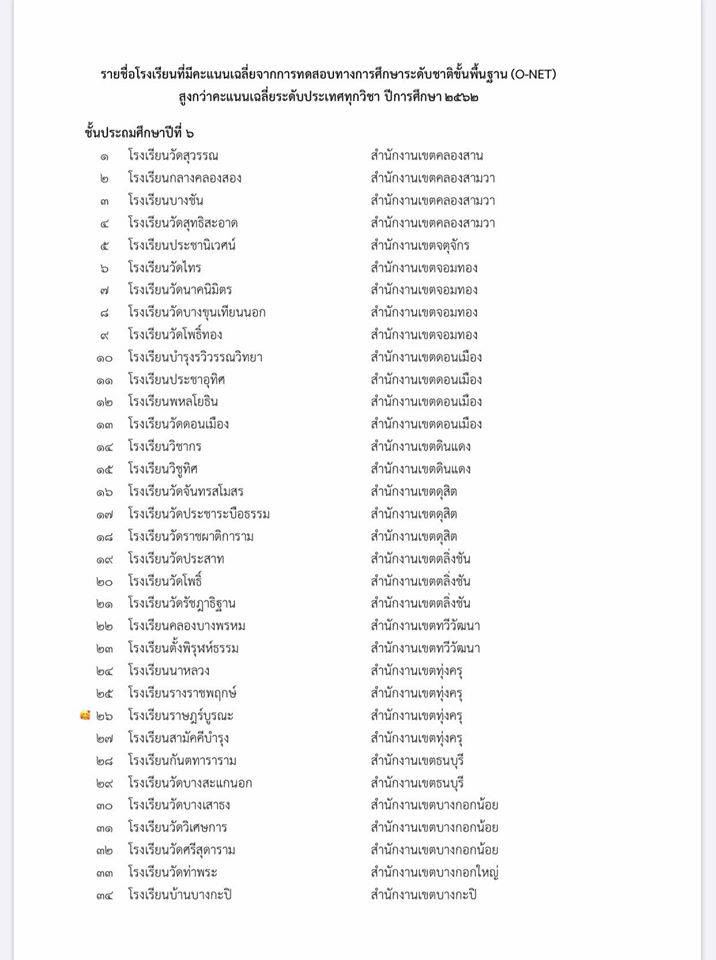 โรงเรียนราษฎร์บูรณะ(มูฮำหมัดอุทิศ) ได้คะแนน O-NET 2562 สูงกว่าคะแนนเฉลี่ยระดับประเทศทุกรายวิชา