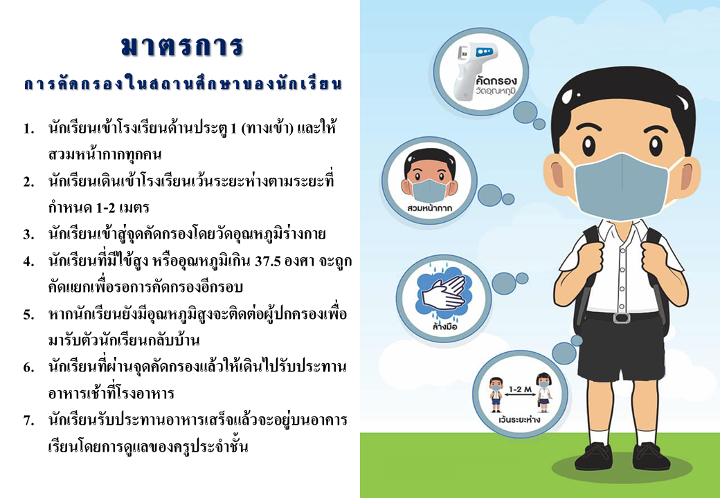 - ทางโรงเรียนหวังอย่างยิ่งว่าจะได้รับความร่วมมือในมาตรการในการเปิดภาคเรียนครั้งนี้เป็นอย่างดี เพื่อความปลอดภัยของบุตรหลานของเรา บุคลากรและชุมชนให้ปลอดภัยจากโควิด -19