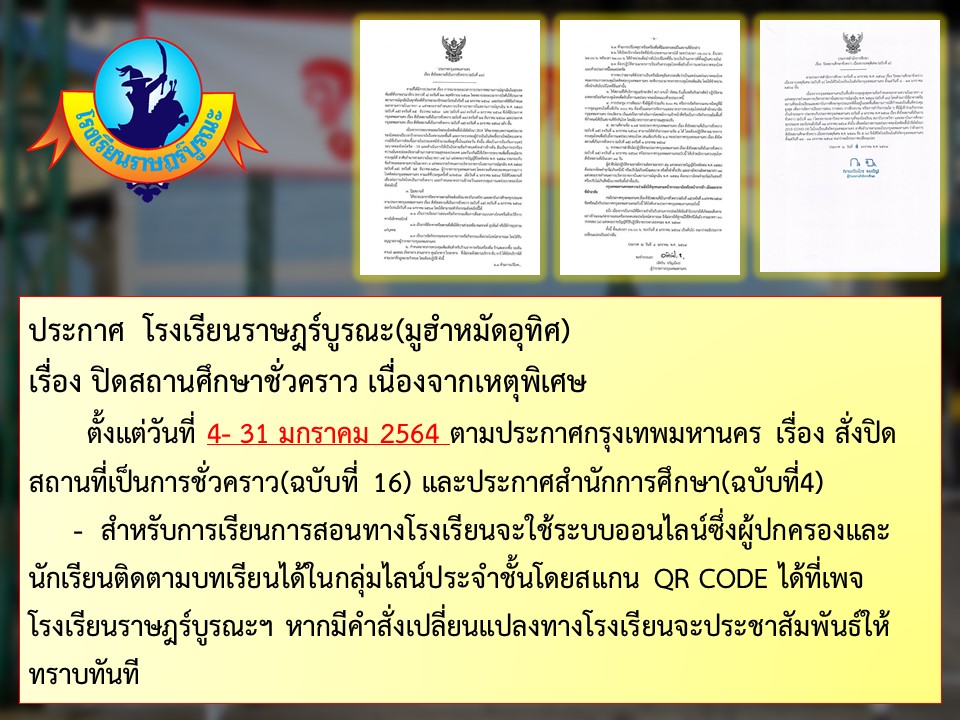 ตั้งแต่วันที่ 4-31 มกราคม 2564 ตามประกาศกรุงเทพมหานครและประกาศสำนักการศึกษา หากมีการเปลี่ยนแปลงใดๆเพิ่มเติมทางโรงเรียนจะแจ้งให้ทราบอีกครั้ง