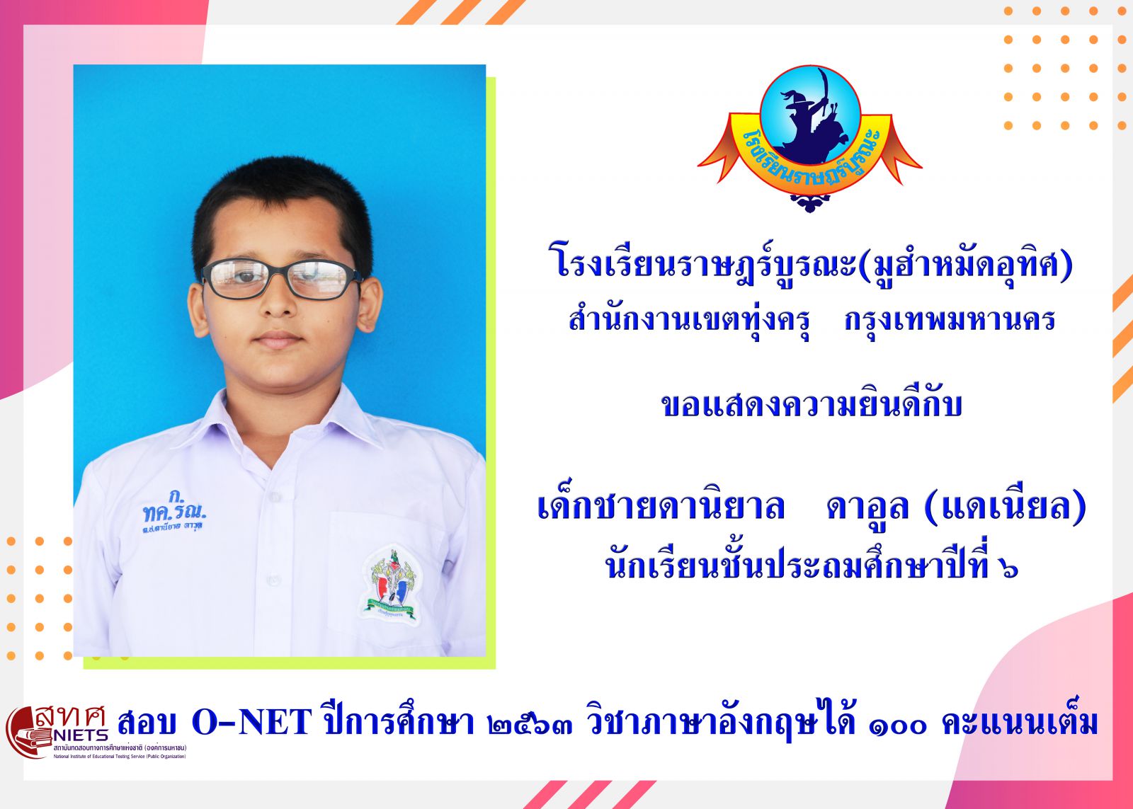 ที่สอบ O-NET ปีการศึกษา 2563 วิชาภาษาอังกฤษ ได้ 100 คะแนนเต็ม