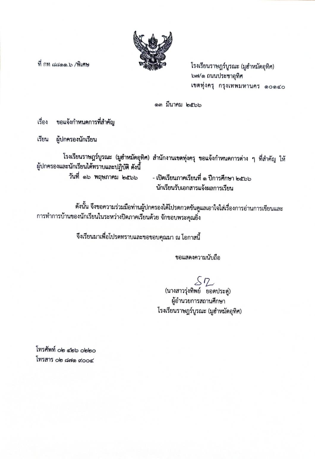 ประชาสัมพันธ์วันเปิดภาคเรียนที่ 1 ปีการศึกษา 2566